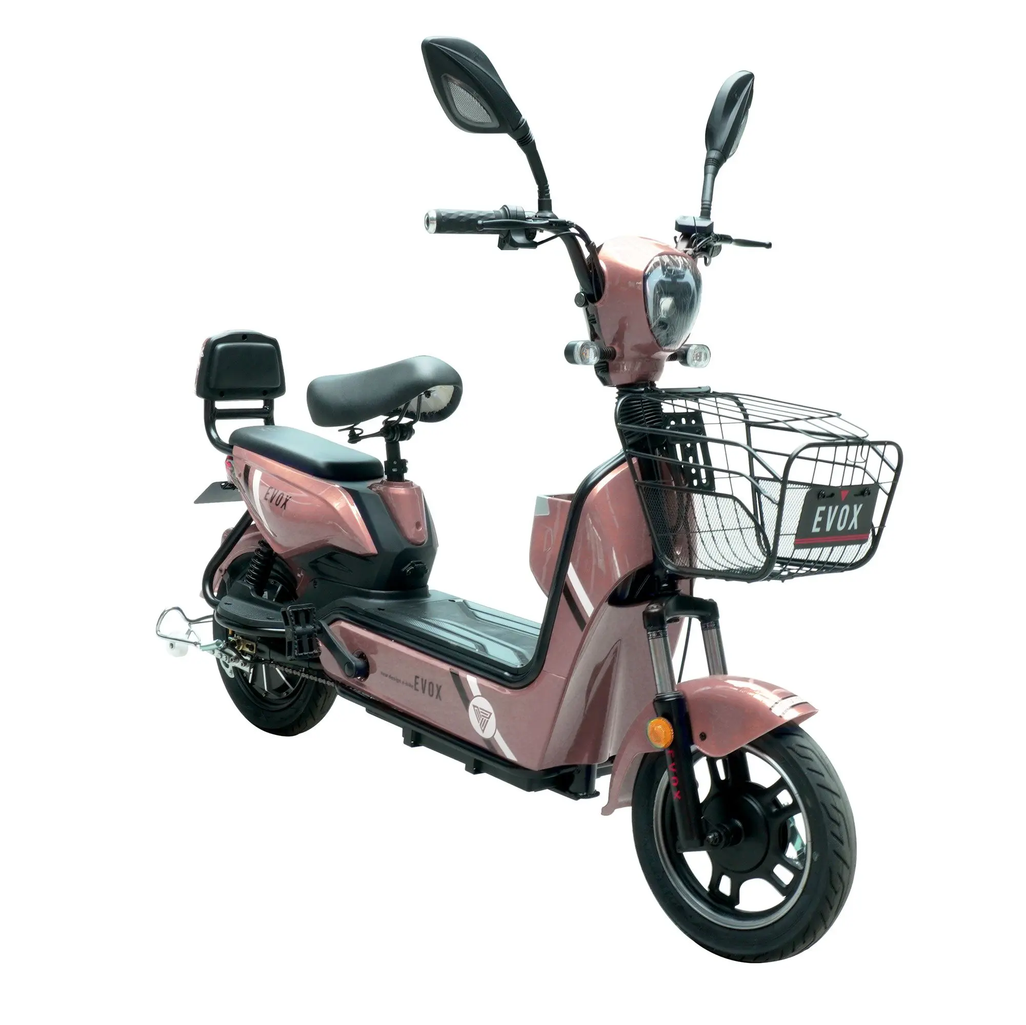 SCOOTER ELECTRICO 500W EVOX ORO ROSA Velocidad rango max. 25-30km / h - Tiempo de carga de 4 a 6 horas - Distancia / Recorrido 50 a 60 km - Motor 48V / 500W - Batería removible 48V / 12Ah - Carga Max. 150kg